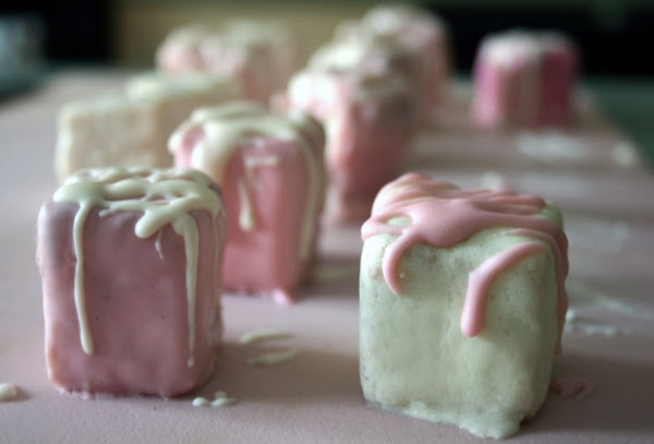 Tia, I just love petit fours!! My Mom always sends me a box around Christmas and I think I eat almost all of them myself. I've never even attempted to make them before though. These look gorgeous and I bet they taste even better. You did a great job.